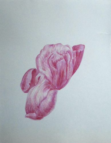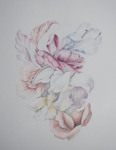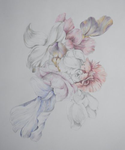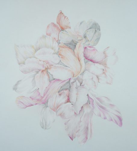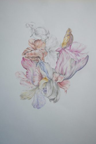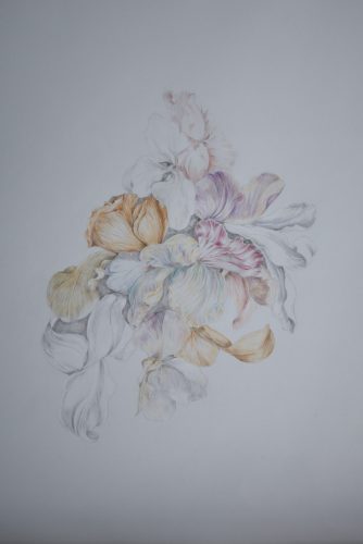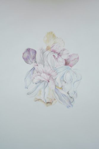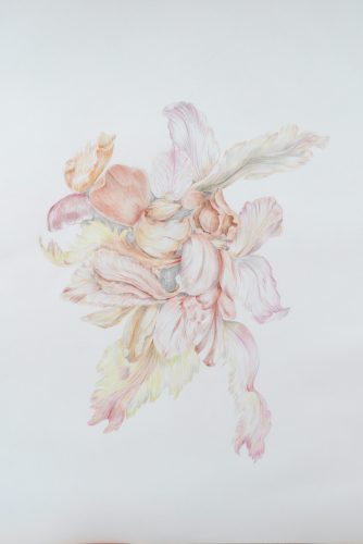 Dans la continuité de la série « Lambeaux », j’extrais des morceaux de fleurs à partir de l’observation de planches de botaniques et de peintures dans l’histoire des arts (Johann Walter, peintre strasbourgeois du 17ème siècle dont l’ensemble des gouaches « le Florilège de Nassau-Idstein » a été le point de départ de ma série à laquelle j’emprunte le nom, Barbara Regina Dietzsch, Rachel Ruysch, Ana Maria Sibylla Merian, Jean-Baptiste Oudry, Pierre-Joseph Redouté, Georgia O’Keefe…).