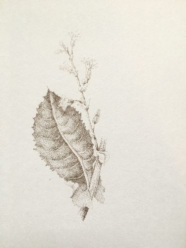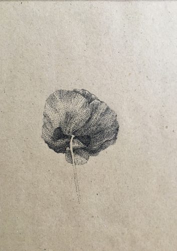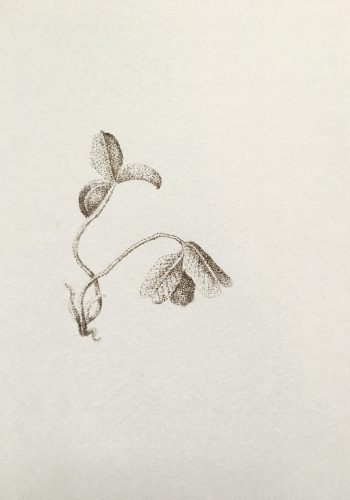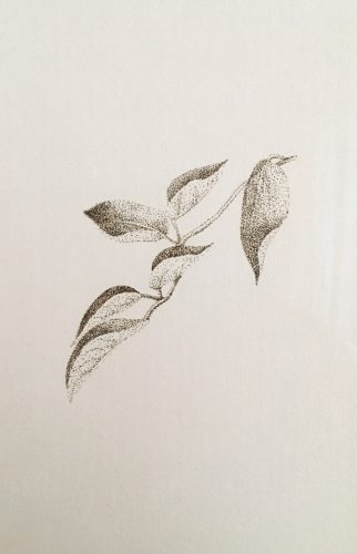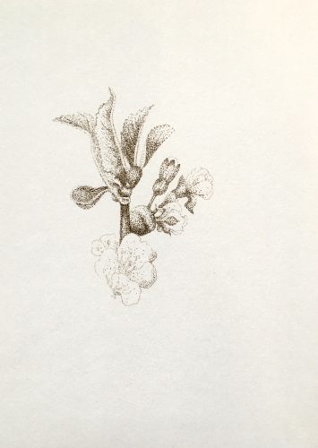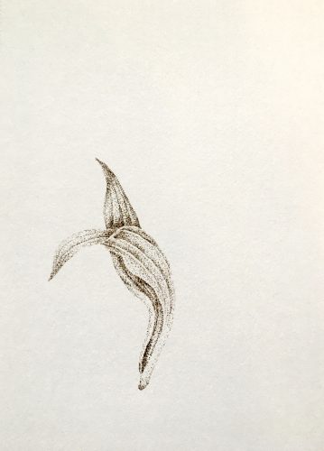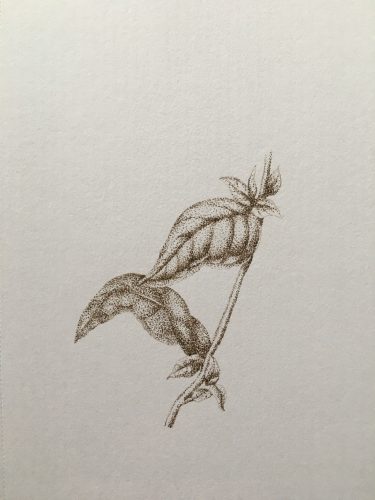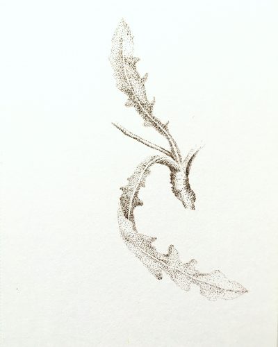 Je choisis le dessin au petit point pour éprouver la lenteur de la pousse des plantes, la lenteur qu’il nous faudrait retrouver pour être en harmonie avec les forces du vivant que nous avons, au rythme effréné de nos technologies, négligées et qui nous rattrapent et bouleversent le climat et nos modes d’habiter, de s’alimenter, de se projeter.