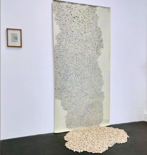 Par une main patiente, lente et obstinée, répéter le même geste, le même motif, accumuler. Répéter, répéter encore mais sans se répéter.