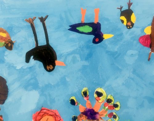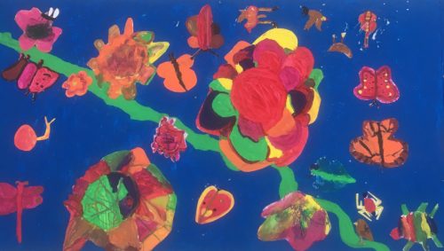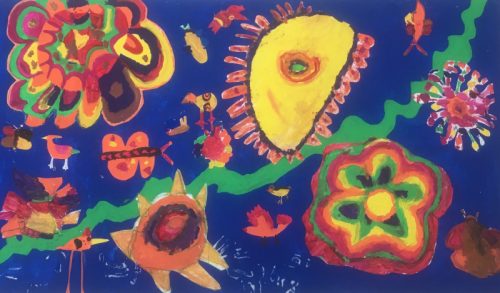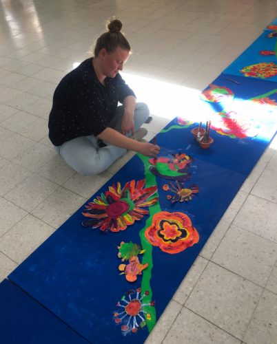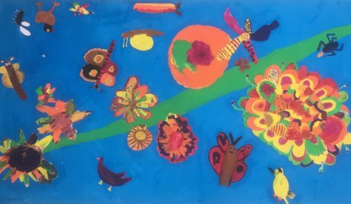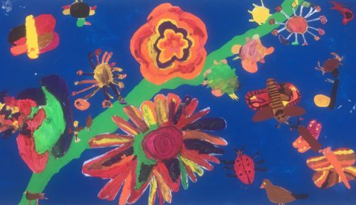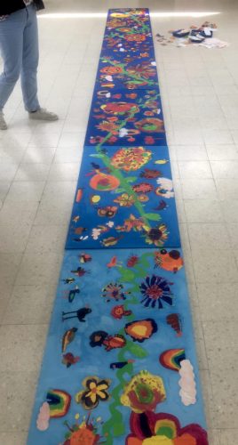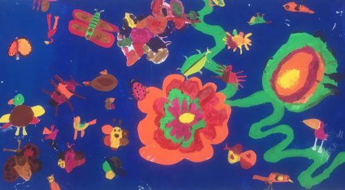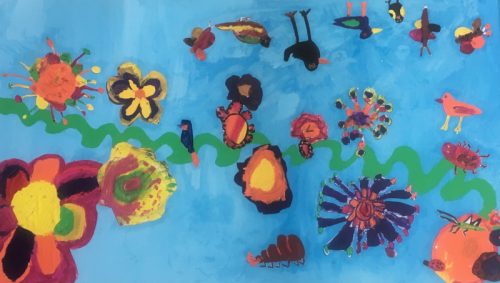 Création collective et colorée de panneaux sur le thème du printemps, installés tout le long du muret de la cour de l’école maternelle Le Colombier, à Survilliers, réalisés par les grandes sections, leurs super maîtresses et ATSEM, en collaboration avec Laurianne Pradines de La Source-Garouste Villarceaux et Patricia De-Bock, conseillère pédagogique en arts plastiques de l’Éducation Nationale.