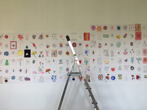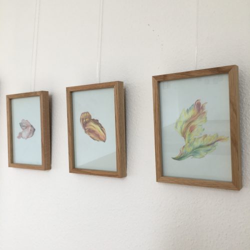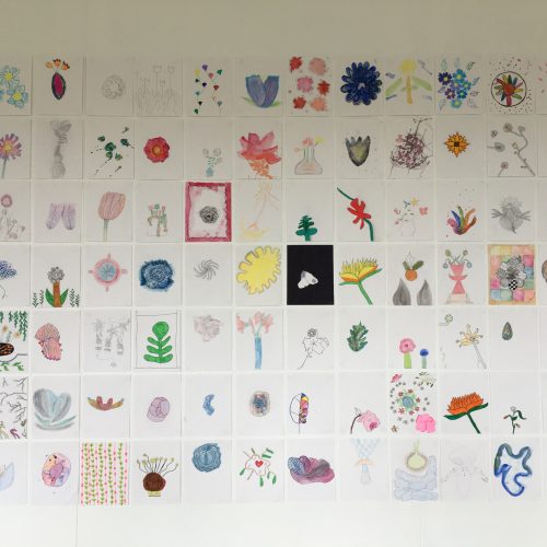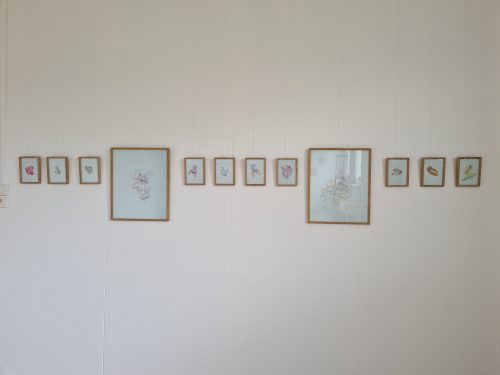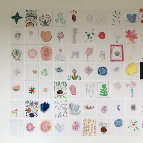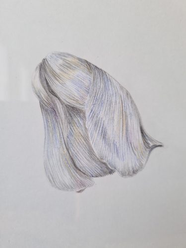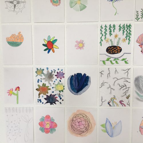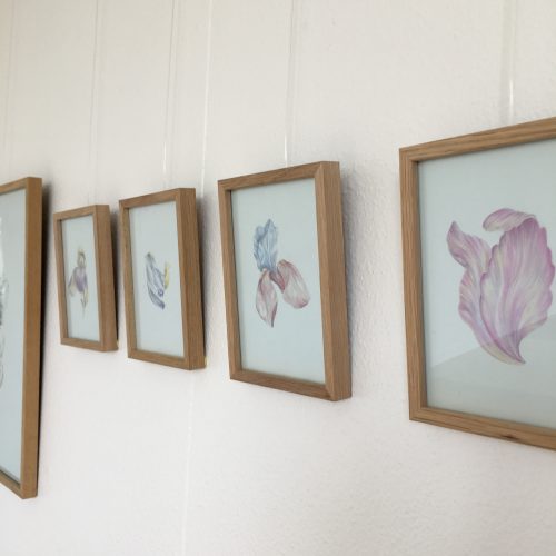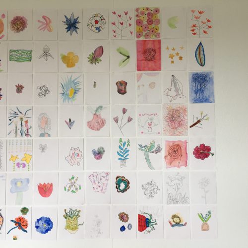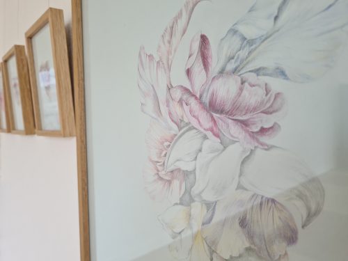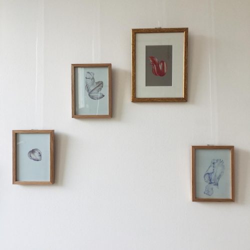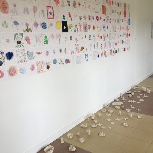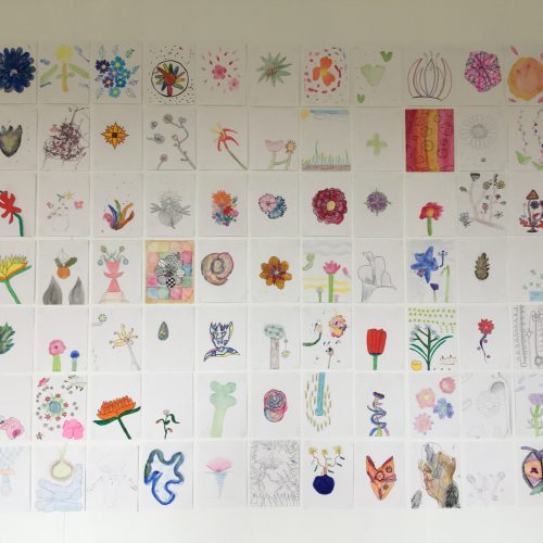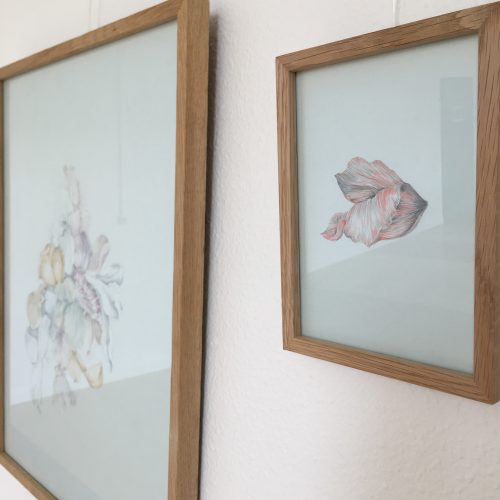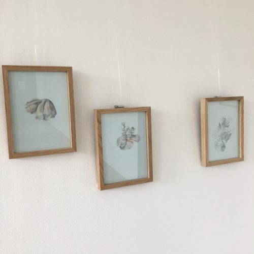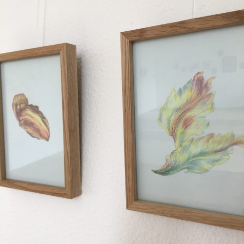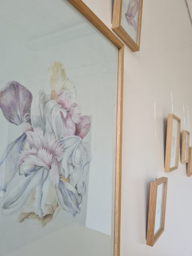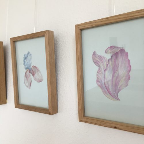 Dans la série « Florilège, extraits de peintures de fleurs », je dessine des fragments de fleurs à partir de l’observation de planches de botanique et de peintures dans l’histoire des arts (Johann Walter, dont l’ensemble des gouaches « Le florilège de Nassau-Idstein » a été mon point de départ et auquel j’emprunte le nom, Barbara Regina Dietzsch, Rachel Ruysch, Jean-Baptiste Oudry, Georgia O’Keefe…)