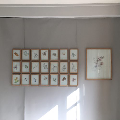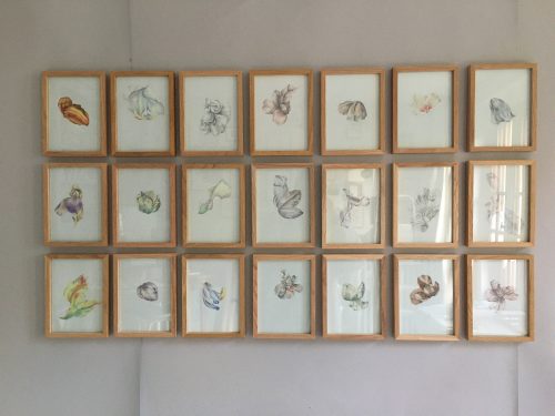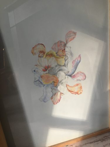 J’y présente ma série de dessin au crayon de couleur, « Florilège, extraits de peintures de fleurs », et accueille le travail photographique et les kokedamas de Bénédicte Ménard.