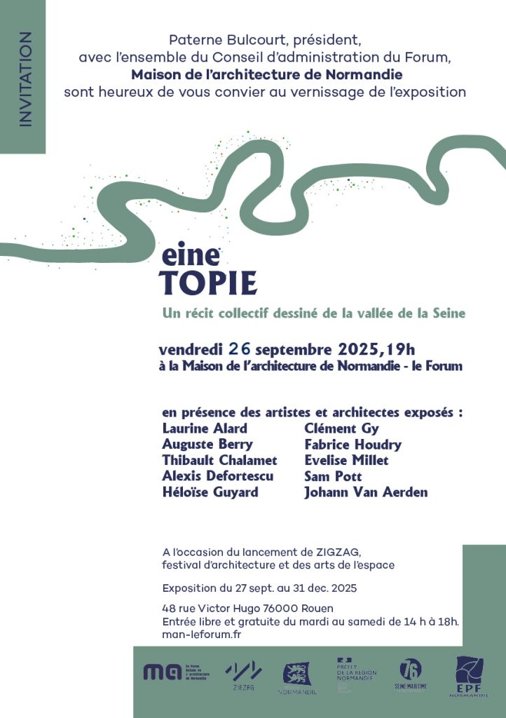 SeineTOPIE invite à une traversée sensible et prospective de la vallée de la Seine. Cette exposition collective esquisse un portrait de ce vaste territoire en mutation, en interrogeant les manières d’y habiter aujourd’hui comme demain. À travers une diversité de regards artistiques et professionnels, elle propose un récit dessiné et collectif, fruit d’explorations, de relevés, de cartes et de témoignages.